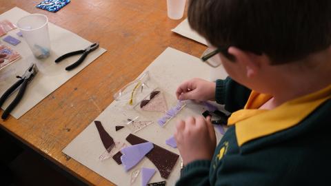 Groups begin with a tour and then cross the floor to become artists. They will learn how to cut and fuse glass and make a coloured glass tile of their own design. Educational and fun, with a memento to keep!